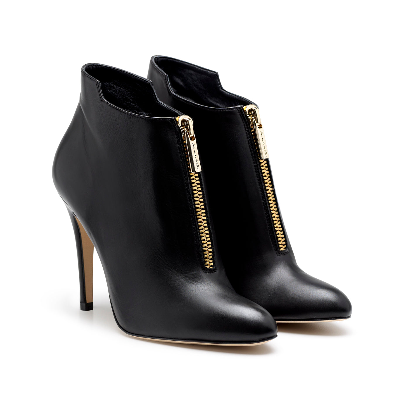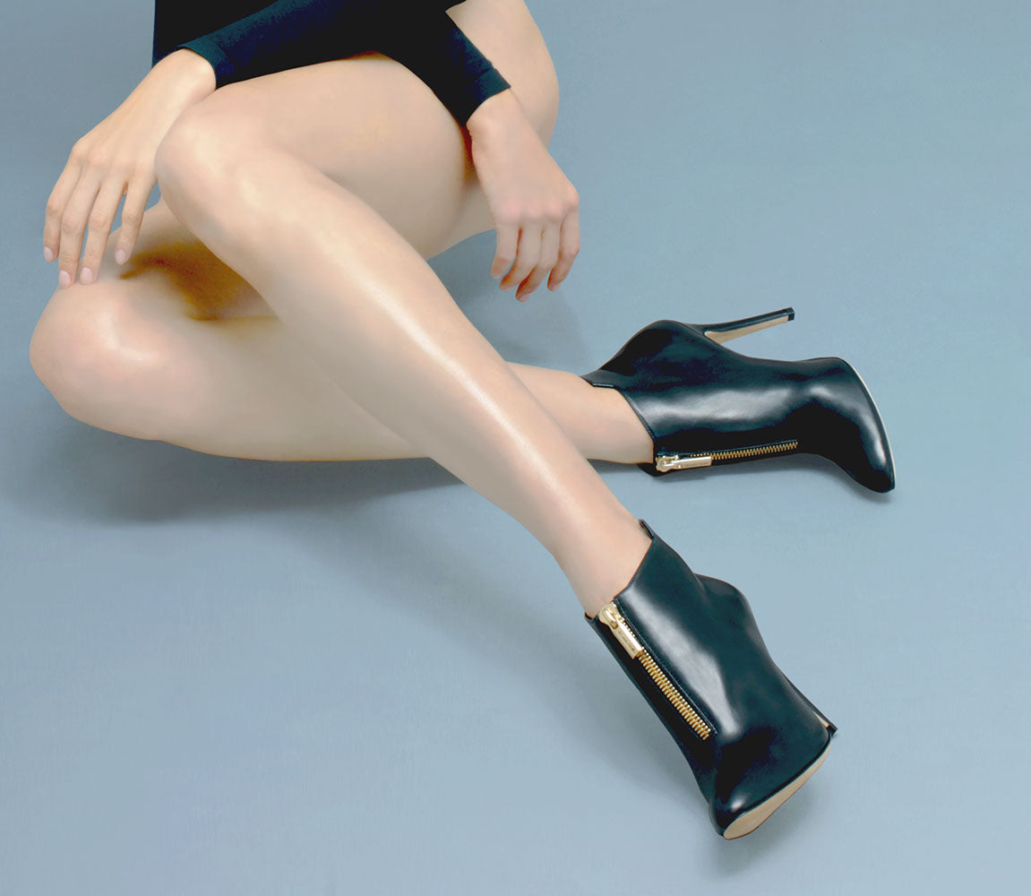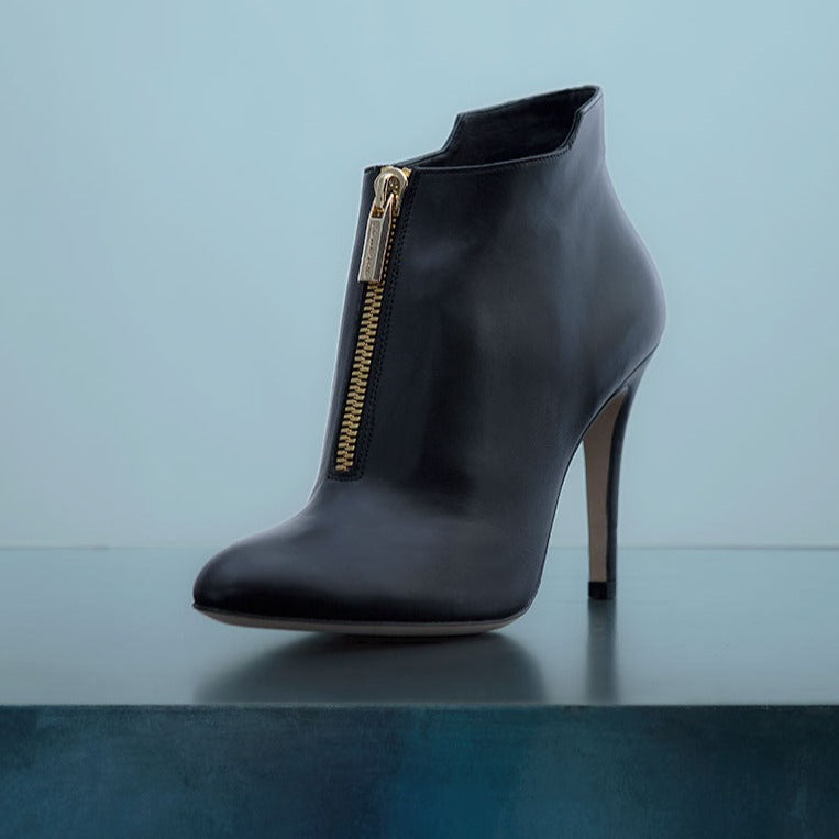 ED AND WILL Chloe High Heel Ankle Boots in Black Nappa Calfskin. Details: